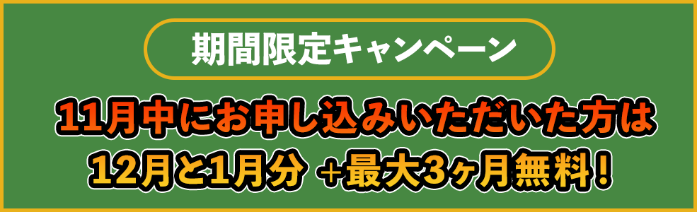 11月中のお申し込みで、12月と1月分の購読期間が無料になる、最大+3ヶ月のキャンペーン中
